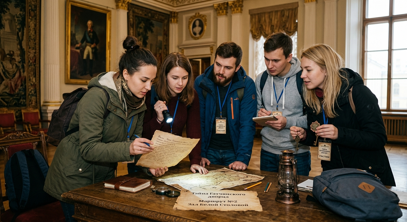 В ходе игры-экскурсии участников ожидает прием у императрицы Марии Федоровны, которая попросит помощи в раскрытии тайны замка. Познакомившись с Гатчинским дворцом, с его парадными залами, длинными переходами и мрачным подземельем, найдя все подсказки и выполнив все задания, юным гостям, быть может, посчастливится раскрыть эту старинную тайну. За что ожидает их достойная награда!